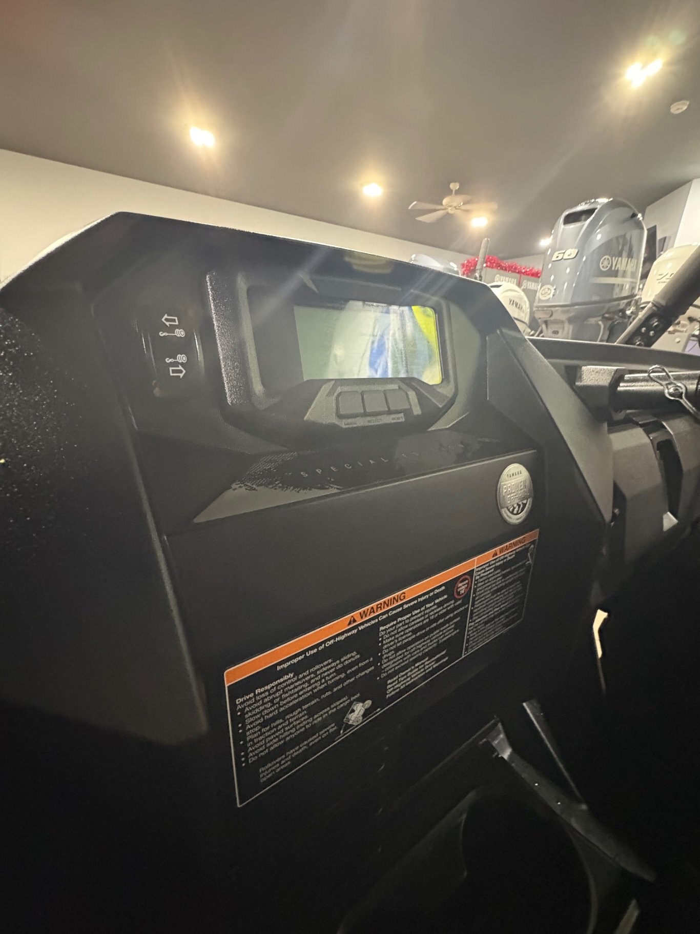 • functions include: speedometer, odometer, dual trip meters, fuel gauge, hour meter, clock, voltage display, On Command mode status, transmission gear indicator, Speed Key mode & various warning lights including low battery, temperature warning & more