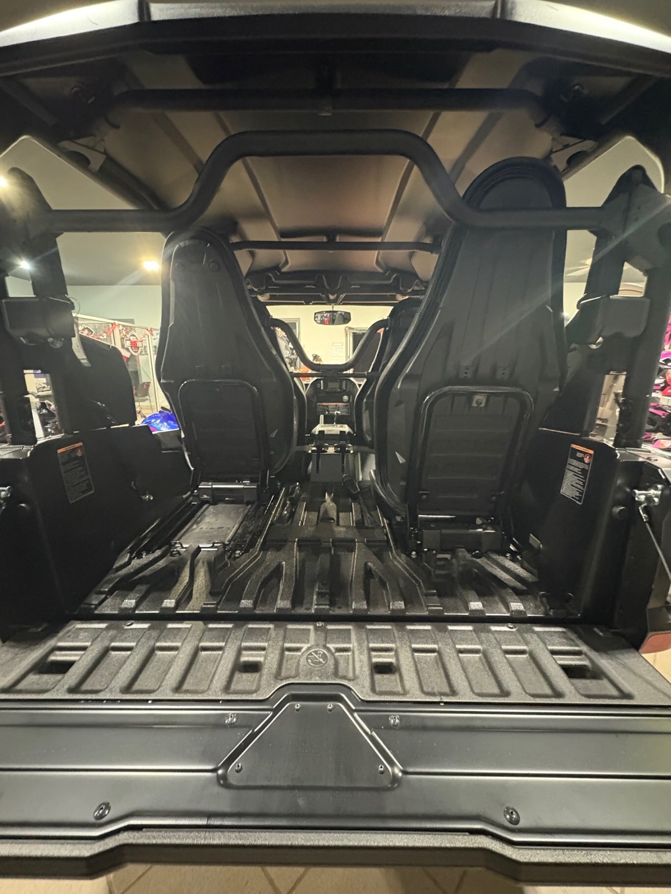 • with 4 seats in place the cargo bed measures 220 mm (8.7") L x 1100 mm (43.3") W X 330 mm (13") H & can hold 71 kg (158 lb) of cargo