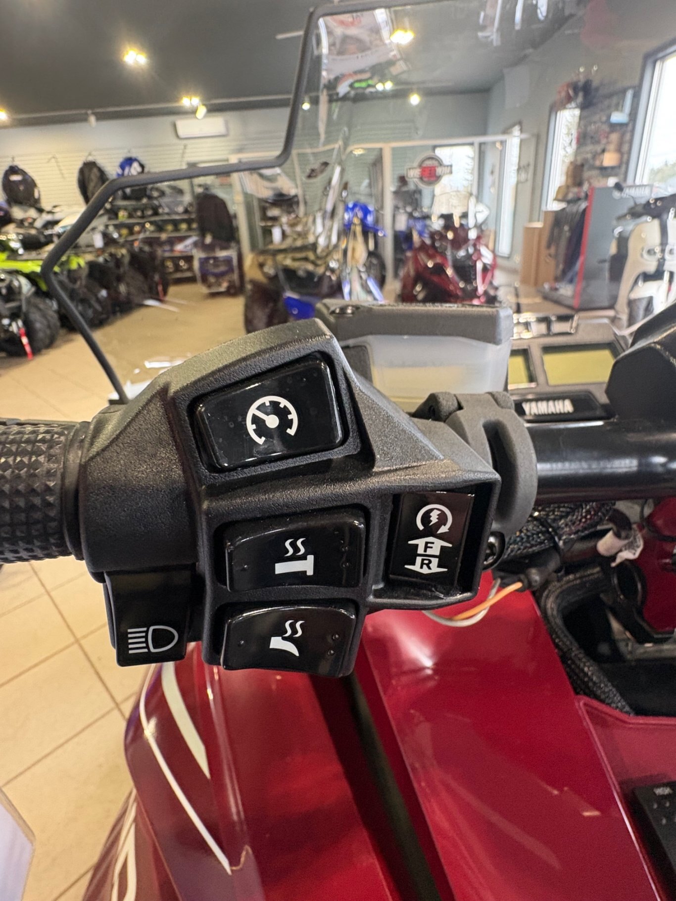 • The handlebar controls feature a left-hand switch cluster which allows for 'on-the-fly' access to the multi-step hand and thumb warmer adjusters.